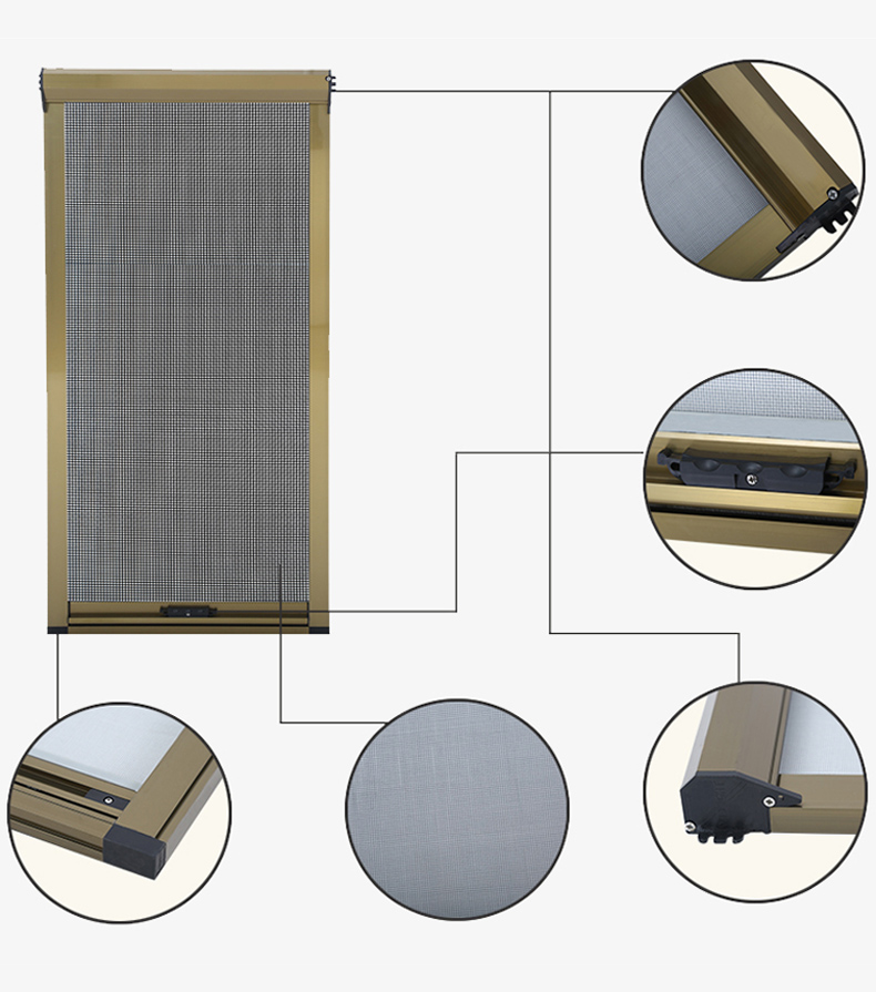 5)自洁功能:纱盒出纱口处的自洁装置可在开关纱窗时自动清洁网面灰尘,保持窗纱表面干净整洁。